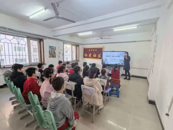 在建设街道红光社区活动现场,黑龙江农业职业技术学院姜老师围绕中医起源、常见药材功效及日常养生小知识,通过实物展示、趣味动画、互动问答等鲜活形式,带来了一堂别开生面的中医药文化课。孩子们凑近观察艾草、金银花等常见药材,踊跃参与“药材辨识小能手”“中医药知识我来猜”等互动游戏,在欢声笑语中解锁传统医药知识,悄然树立起健康自护的意识。