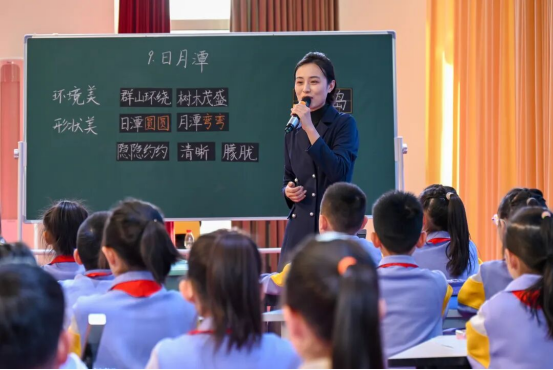 隋越老师执教《日月潭》,以情境为纽带,巧妙运用AI导游、数字人等技术,引导学生沉浸于文本的想象、感悟与审美之中。在落实“语言运用”“审美创造”等语文核心素养的同时,厚植家国情怀,体现了“以文化人”的课标精神。