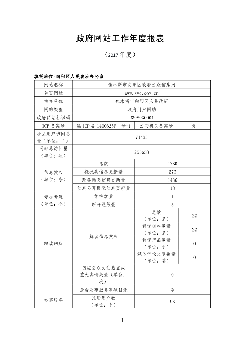 2017年度佳木斯市向阳区人民政府网站工作年度报表