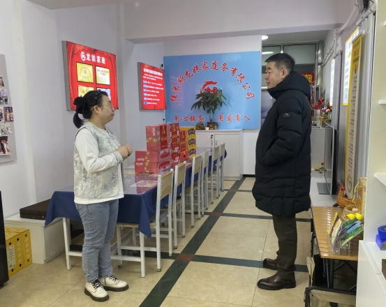 2月11日,向阳区人大常委会副主任、区总工会主席陈佳宇深入辖区新就业形态企业,开展新春送温暖走访慰问活动,为坚守一线的新就业形态劳动者送上精心准备的八宝粥、罐头等慰问品,把党和政府的关怀、工会“娘家人”的温暖送到职工身边。