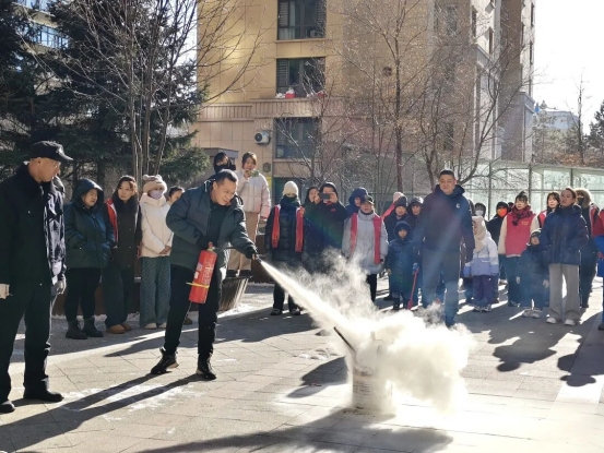 活动中,社区与物业工作人员结合真实案例,详细讲解火灾诱发因素、家庭用火用电用气安全注意事项,以及火灾隐患排查、初期火灾扑救、逃生自救等知识。随后现场示范灭火器“提、拔、握、压”使用要领及消防水带连接、抛洒技巧,并指导大家实操练习。
