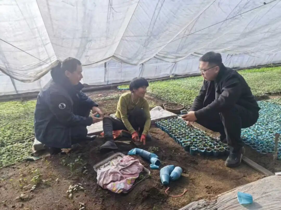 工作人员首先来到育苗基地,仔细查看种苗长势和育苗进度,详细了解品种选育、苗床管理、温湿度调控等情况。针对近期气温波动较大的实际,现场指导农户做好防寒保温、病害防治等关键环节,确保育出优质壮苗。工作人员还与基地负责人深入交流,询问农资准备、技术需求等方面存在的困难和问题,并逐一记录、现场协调解决。