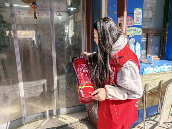本次巡查聚焦消防安全关键环节,直击重点风险领域。工作人员逐一走进商铺,对灭火器有效期、压力数值及摆放位置进行细致核查,确保消防设施完好有效、关键时刻“拿得出、用得上”;同时,重点排查商铺内部用电线路,严查私拉乱接、线路老化、超负荷用电等违规行为,从源头遏制火灾隐患滋生。针对沿街商户门前电瓶车违规停放、“飞线”充电等高频风险点,工作人员现场督促整改,引导商户将车辆规范停放至指定区域,通过案例讲解强调违规充电的安全危害,切实提升商户安全防范意识。