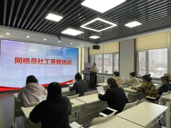 各社区结合工作实际,依托党建学校“社工实务”“综合治理”“便民服务”等课程模块,开展形式多样的学习与检验活动。组织网格员开展社工知识答题活动,社区多科室选派网格员参与,答题内容紧扣社区工作内涵、方法,融合网格员日常工作职能、居民服务技巧及相关法律法规知识,设置必答题、风险题、抢答题等多种题型,同时以赛代训,巩固工作人员的业务知识,强化责任意识与爱岗敬业的工作热情。以集中授课、交流研讨相结合的方式,组织专业知识专题学习,推动专业社工知识与网格巡查、入户走访、民生帮扶等日常工作深度融合,学习过程中工作人员互帮互助、交流探讨难点问题,营造良好的学习氛围,有效拓展工作思路。