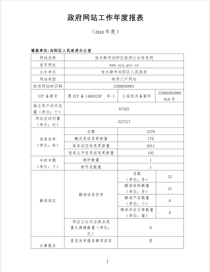 2018年度佳木斯市向阳区人民政府网站工作年度报表