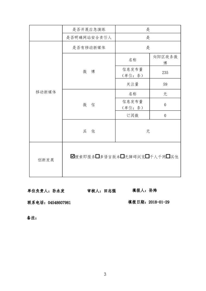 2017年度佳木斯市向阳区人民政府网站工作年度报表