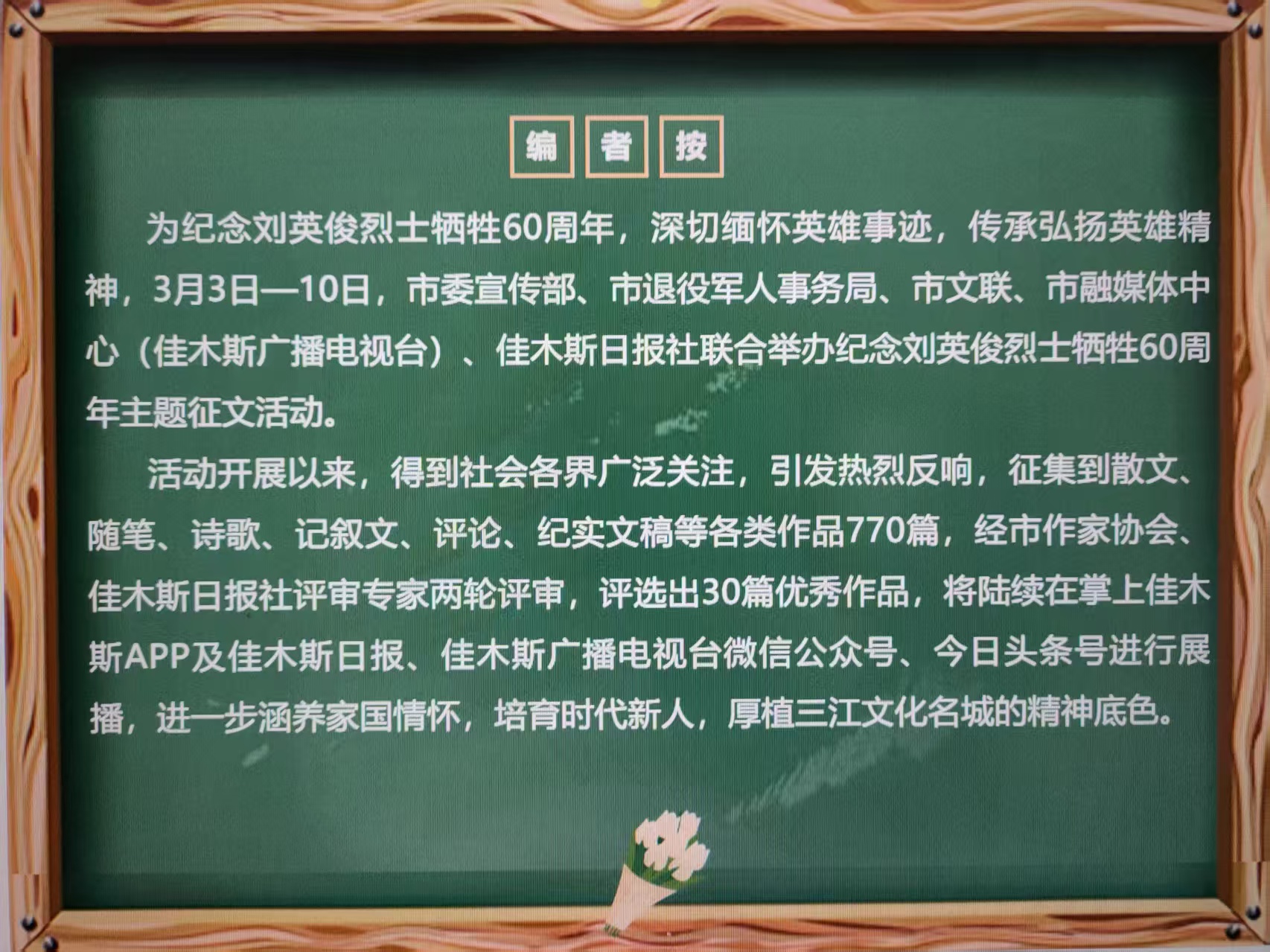 英魂不朽,砥砺不止。刘英俊,这位二十一岁的青年,用生命完成了一次托举,托举起六个孩童的生机,更托举起一座城市六十年的精神海拔。佳木斯,则以持续六十年的铭记与践行,完成了一场双向奔赴:城市滋养了英雄,英雄塑造了城市。这穿越甲子的回响告诉我们:真正的英雄,从未离开。他活在每一条以他命名的街道,每一颗被感召的向善心灵,每一次无私地伸出援手,每一份为家国担当的青春热血之中。