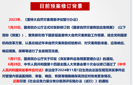 二是完善了应急响应启动条件。针对四个核心指标(包括因灾死亡人口、倒塌或严重损坏房屋数量、紧急转移安置人数或需紧急生活救助人口等)做了相应调整和完善,提高《预案》操作性。